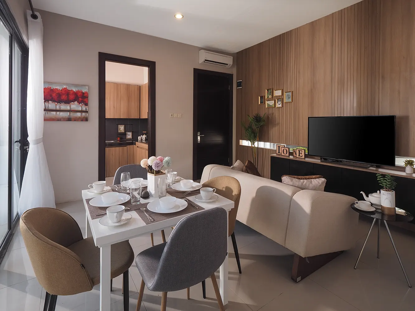 Tampilan suasana yang baru akan terlihat dari warna-warna dalam sebuah ruangan. Rumah modern biasanya cenderung memiliki perpaduan warna yang serasi dan tergolong netral. Kamu bisa memadukan perabotan yang memiliki bahan dasar atau warna yang senada dalam suatu ruangan.