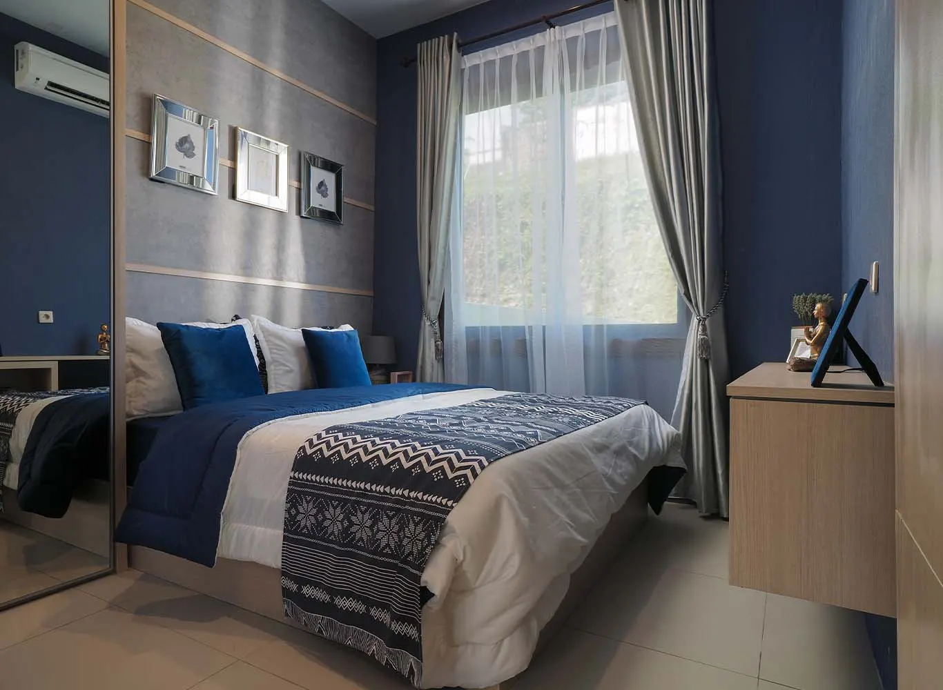 Dinding rumah yang polos akan lebih menarik jika ditambahkan dengan hiasan. Kamu bisa menambahkan sedikit warna seperti menggantungkan lukisan, kain dan cermin. Banyak rumah modern yang lebih suka menambahkan cermin besar karena akan memberikan ilusi luas untuk suatu ruangan.